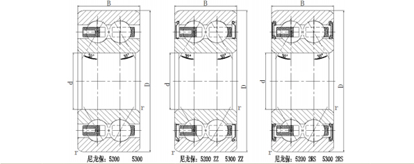 若轴承内、外圈之间存在倾斜角,将影响轴承的寿命,同时造成轴承运转精度下降,运转噪声增大。双列角接触球轴承一般采用尼龙保持架或黄铜实体保持架。双列角接触球轴承安装时应注意,虽然轴承可承受双向轴向载荷,但若一侧有装球缺口时,则应注意不要让主要轴向载荷通过有缺口的一侧沟边。在轴承使用时应注意使不带装球缺口的一侧滚道承受主要载荷。